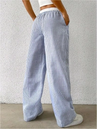Name: Trends Frenchy Women's Drawstring Waist Striped Casual Trousers With Straight Cut, Pleats, And Pockets Clothes Fall Clothes Women Pants Striped Linen Trousers Cotton