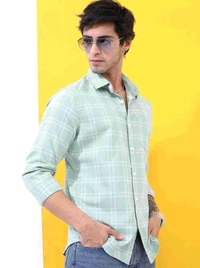 Highlander Men Slim Fit Y/D TWILL CHECKS MINT GREEN Shirt